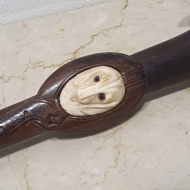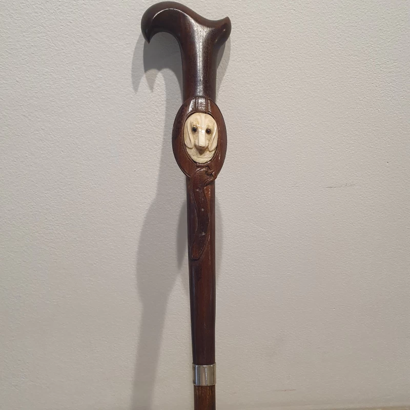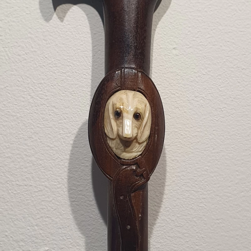 Antiguo Bastón Artístico Tallado a Mano con Motivo “ Perro ”