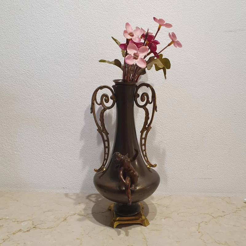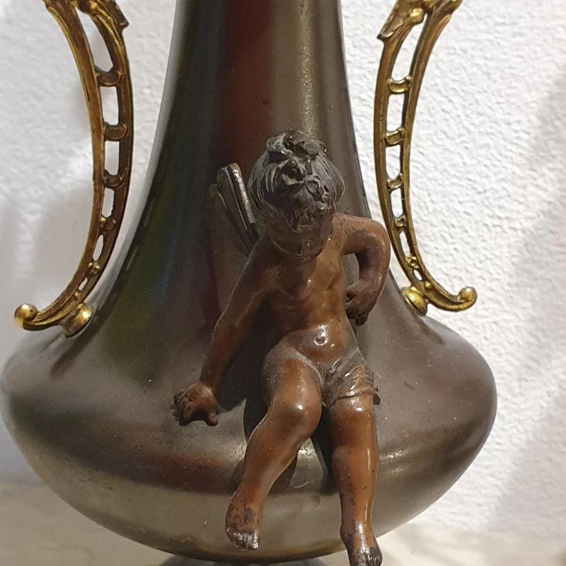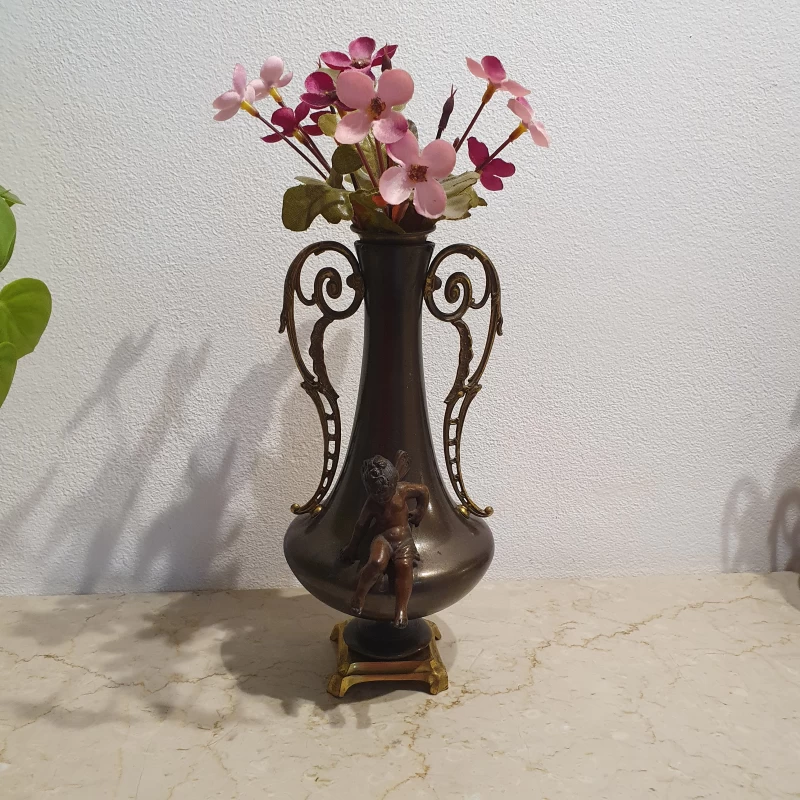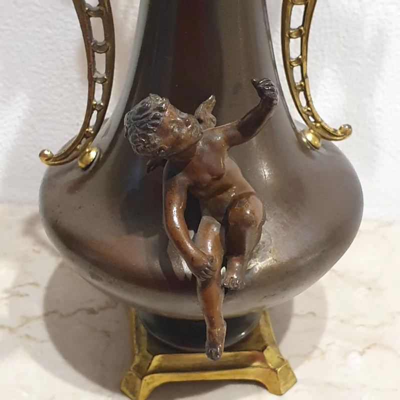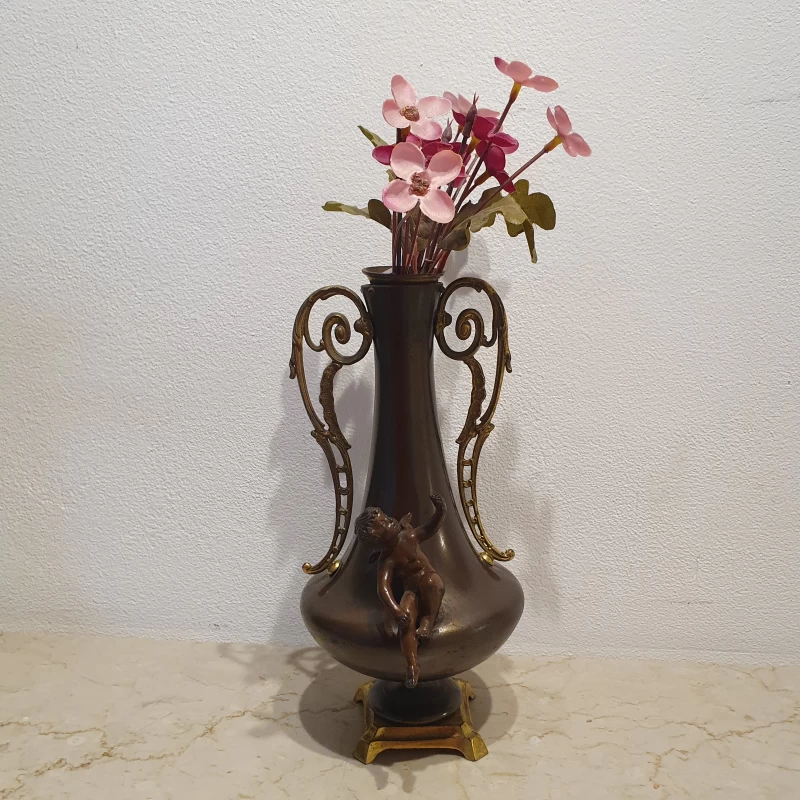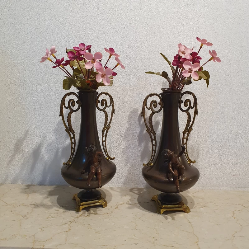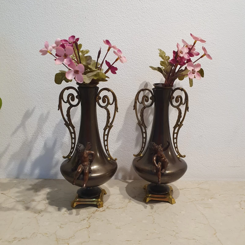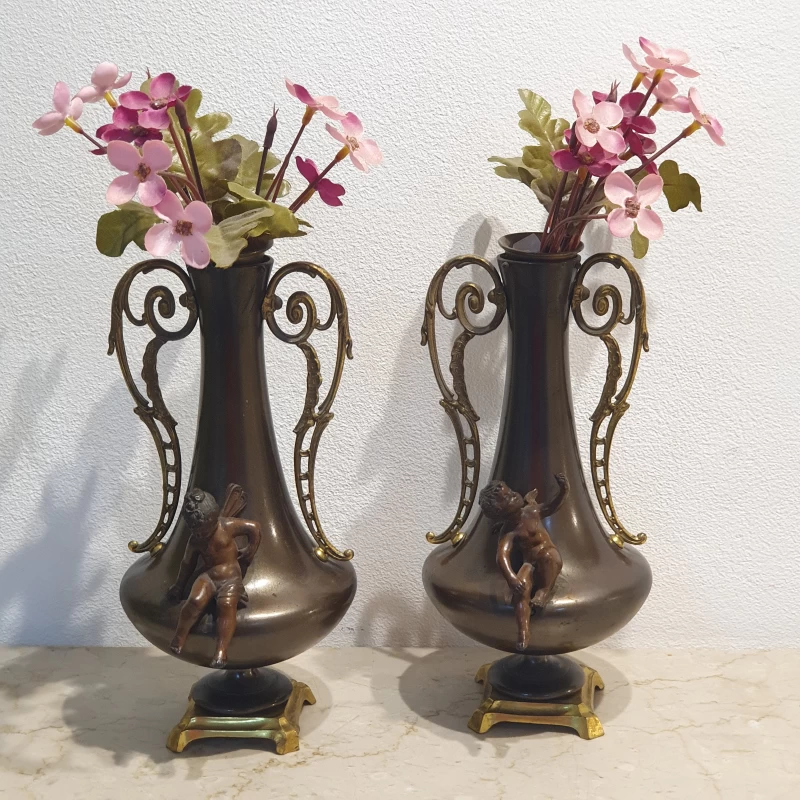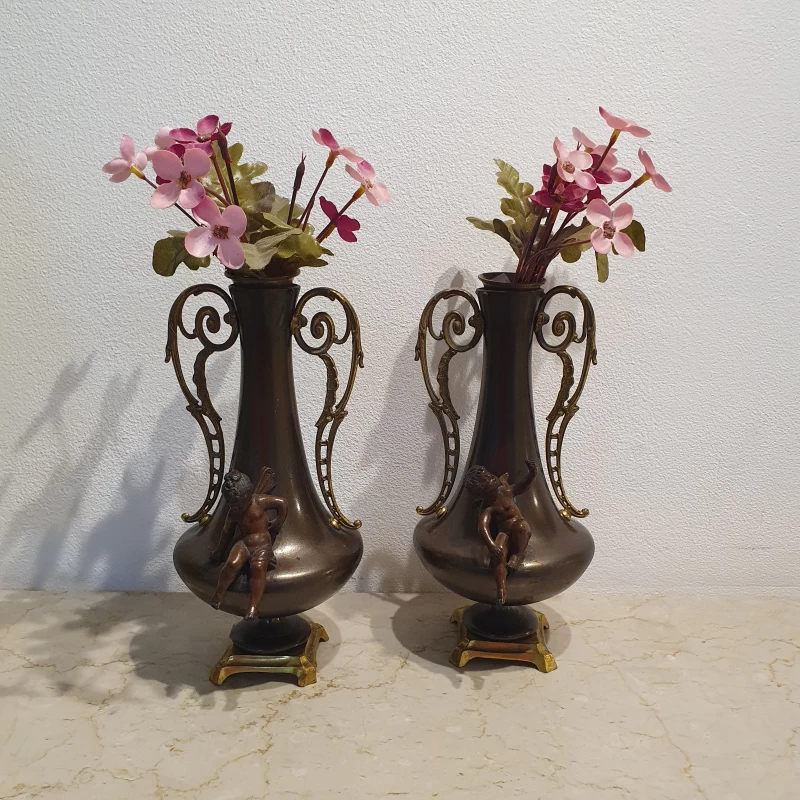 Antiguo Par de Floreros en Bronce
