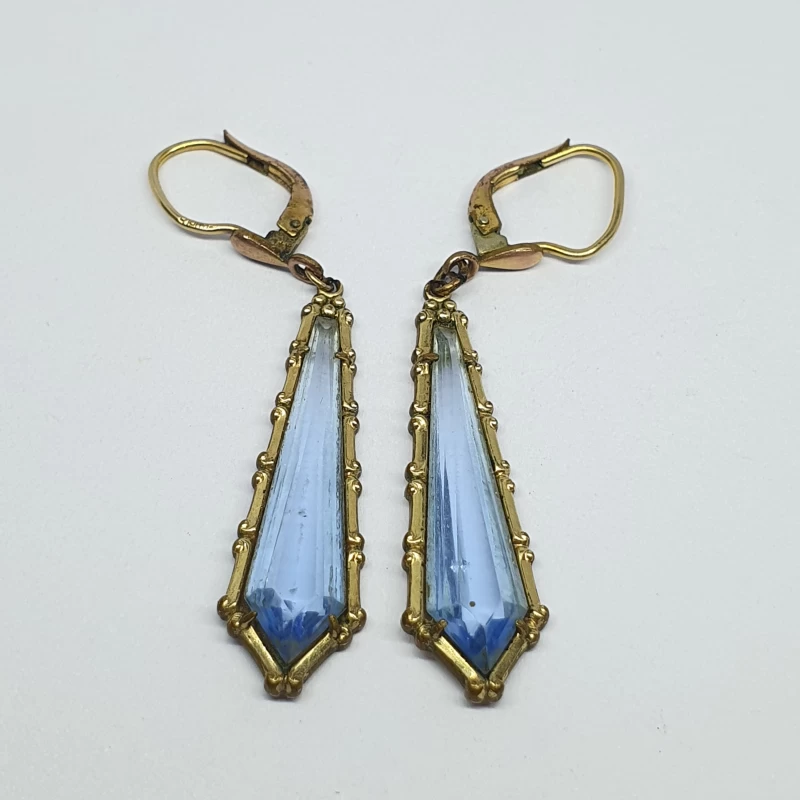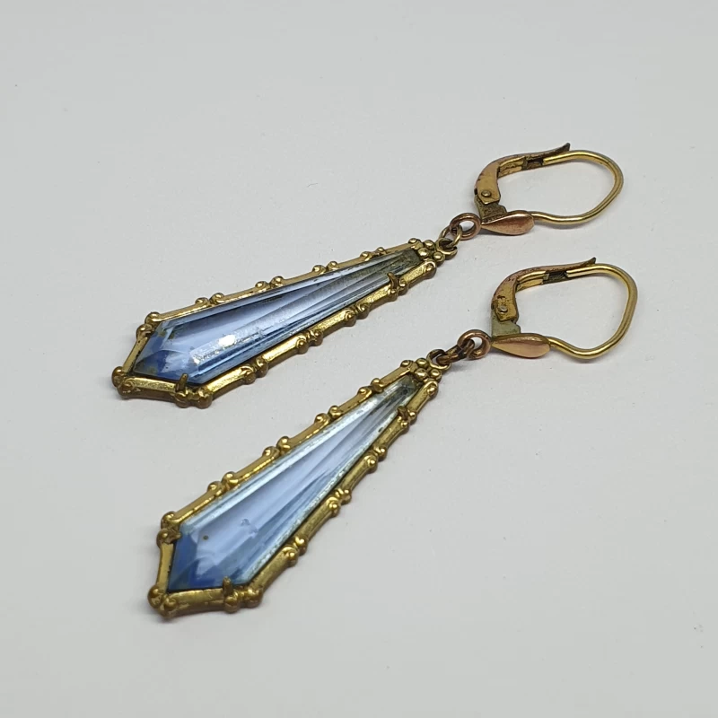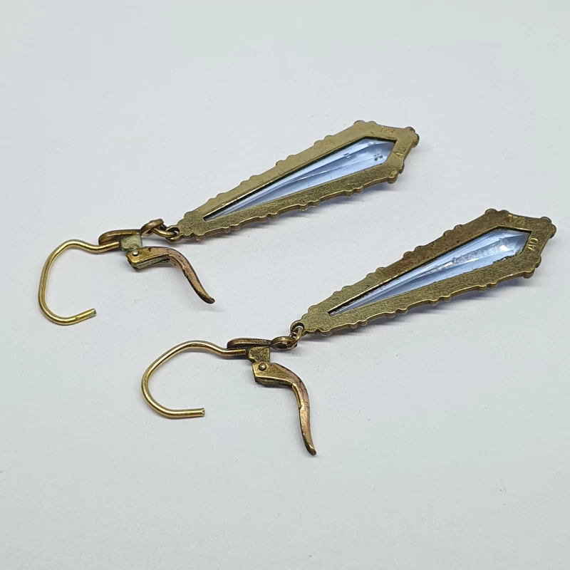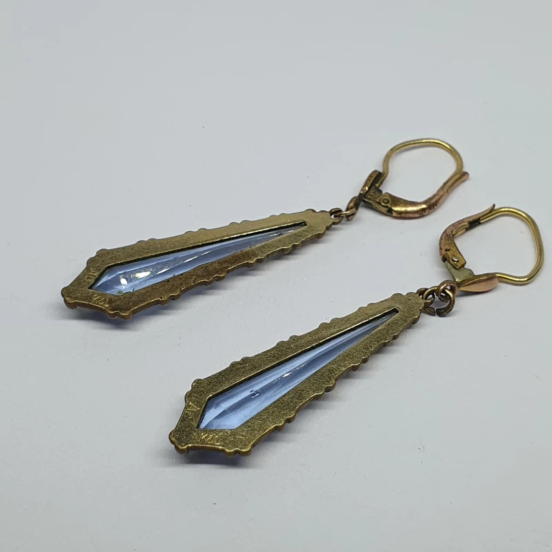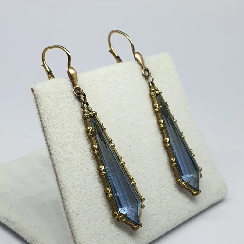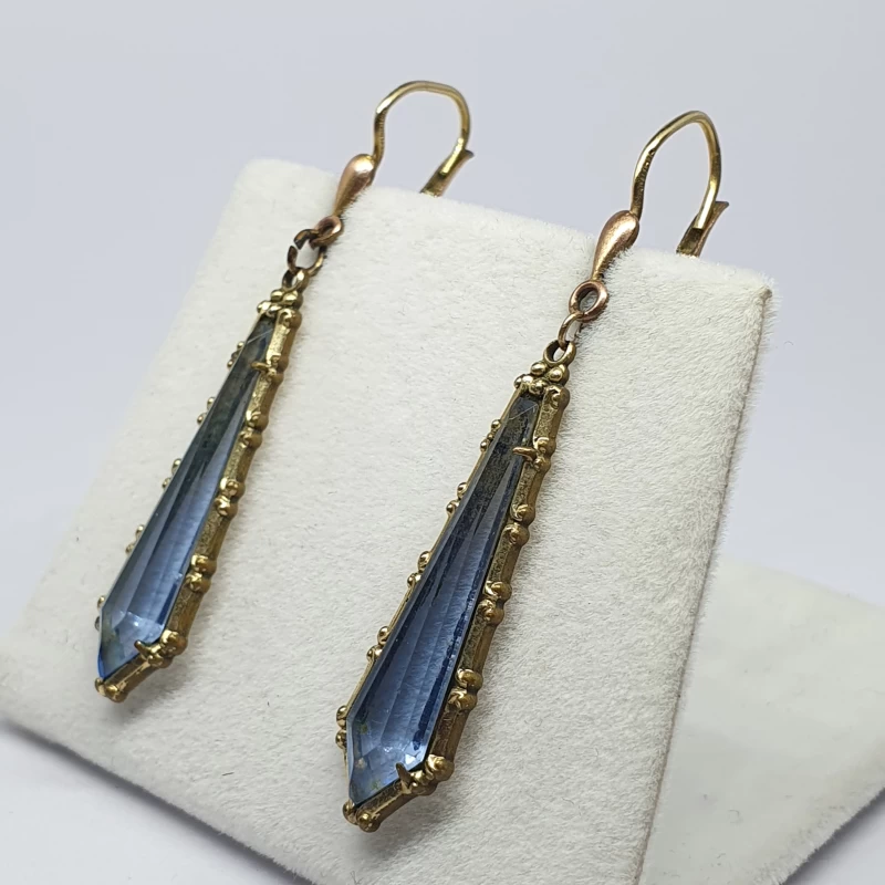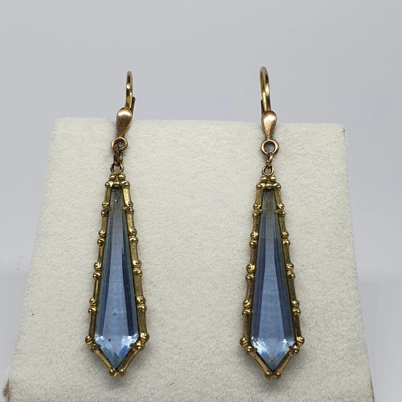 Antiguos Aros Corbata Bañados en Oro con Gema Azul