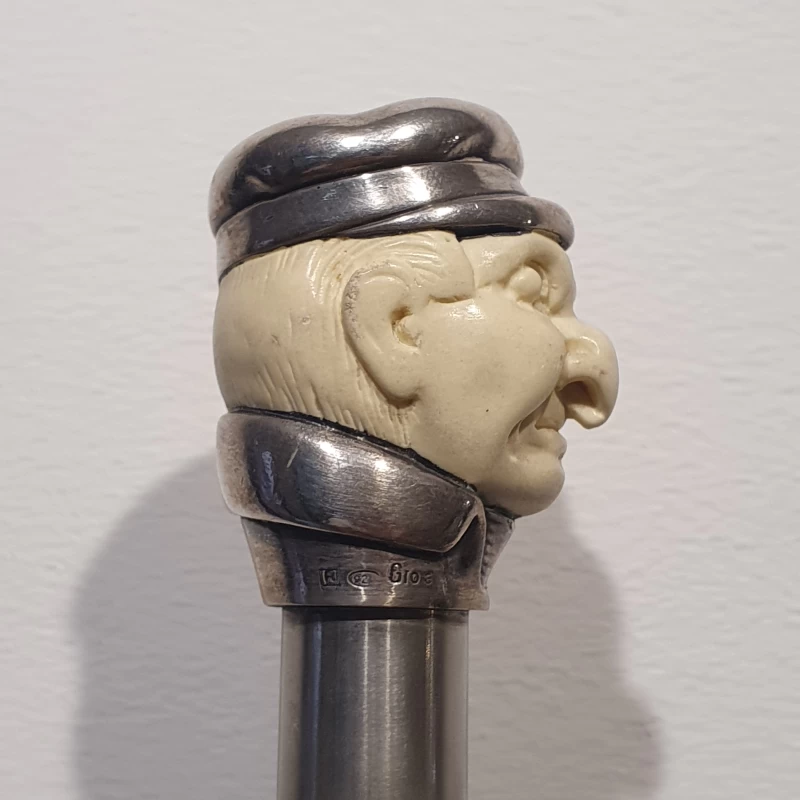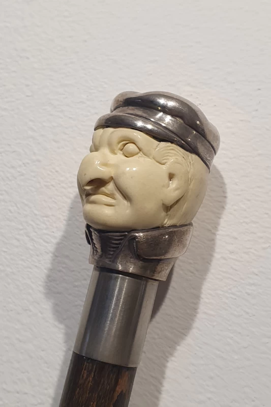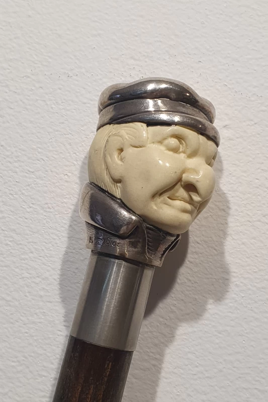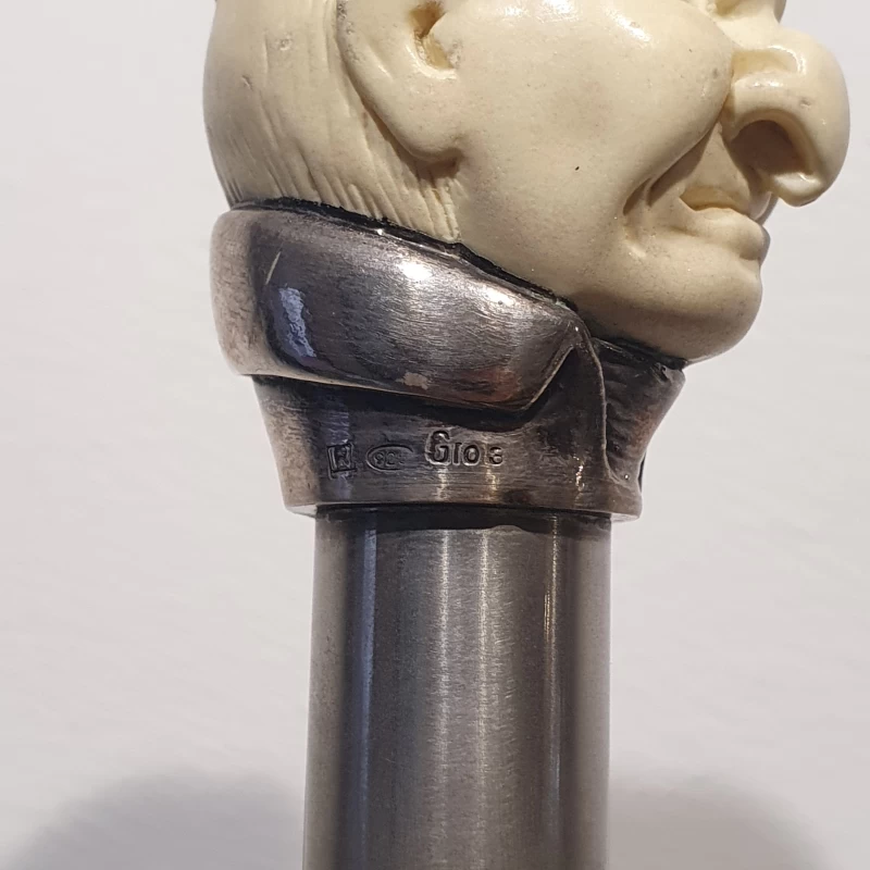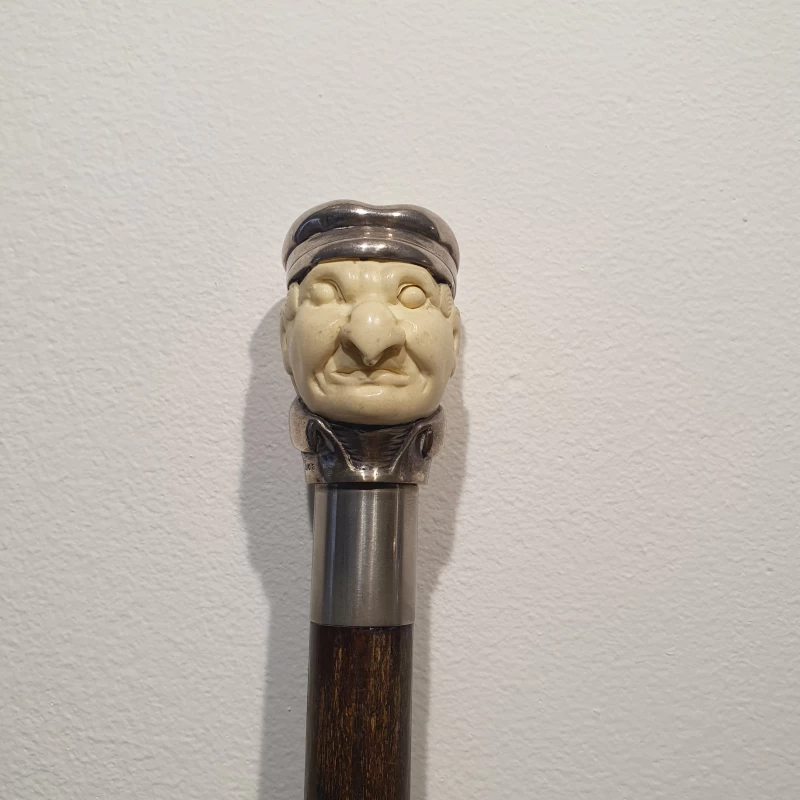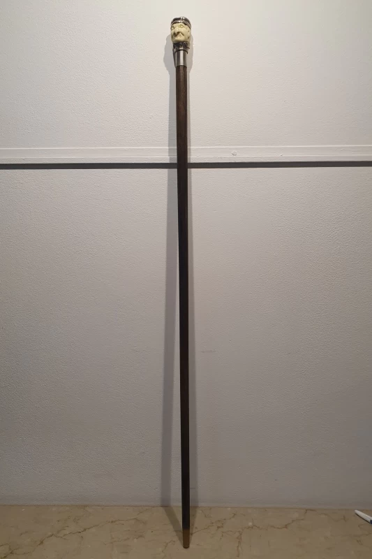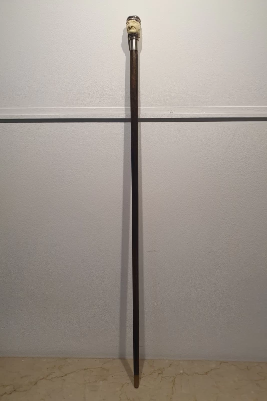 Bastón Antiguo - Cabeza Tallado a Mano Con Plata Esterlina