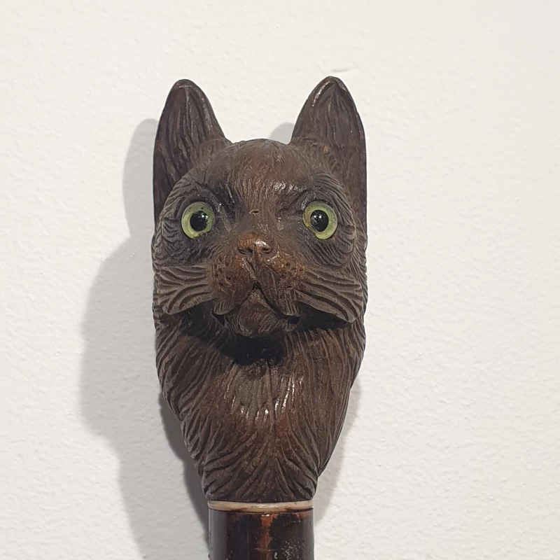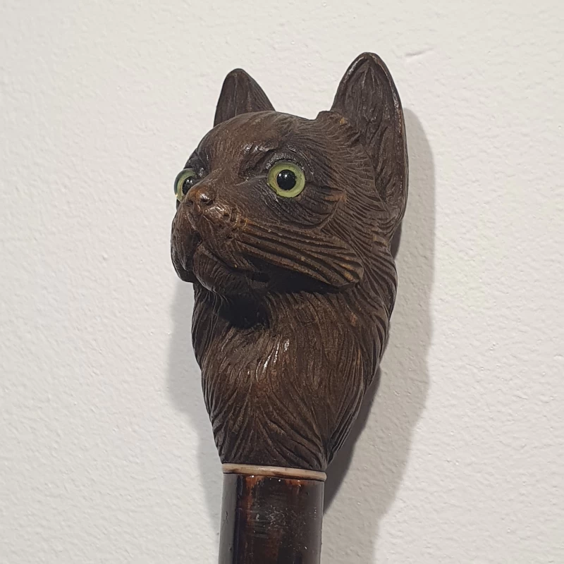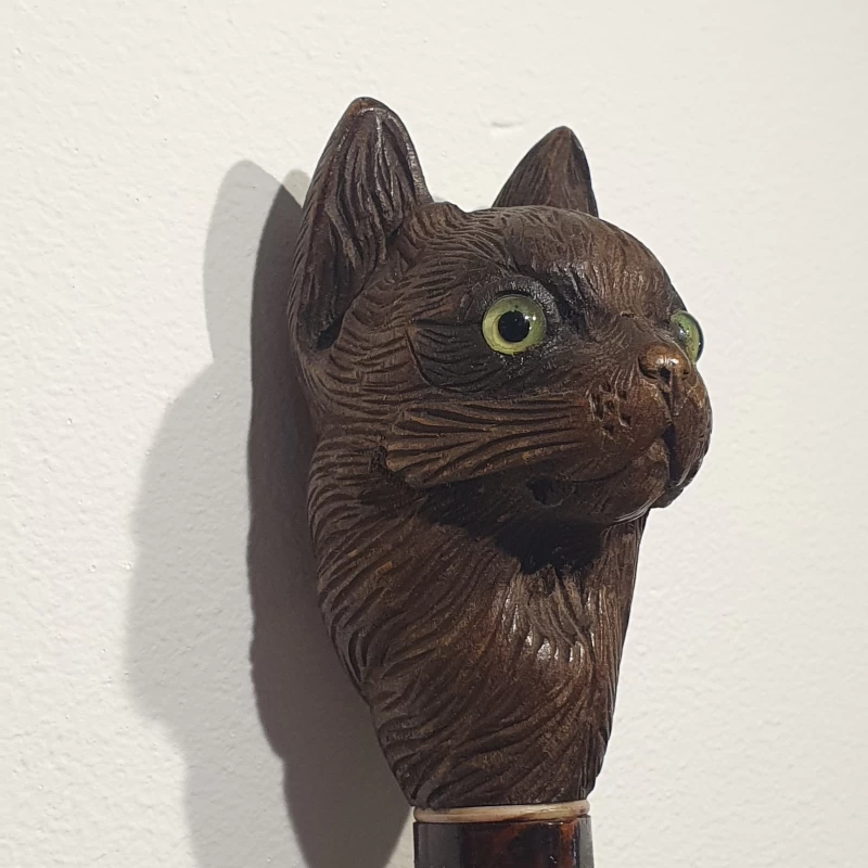 Bastón Artístico de Madera Con Gato Tallado a Mano