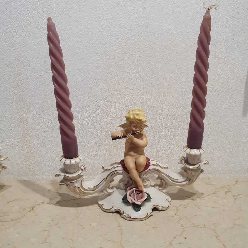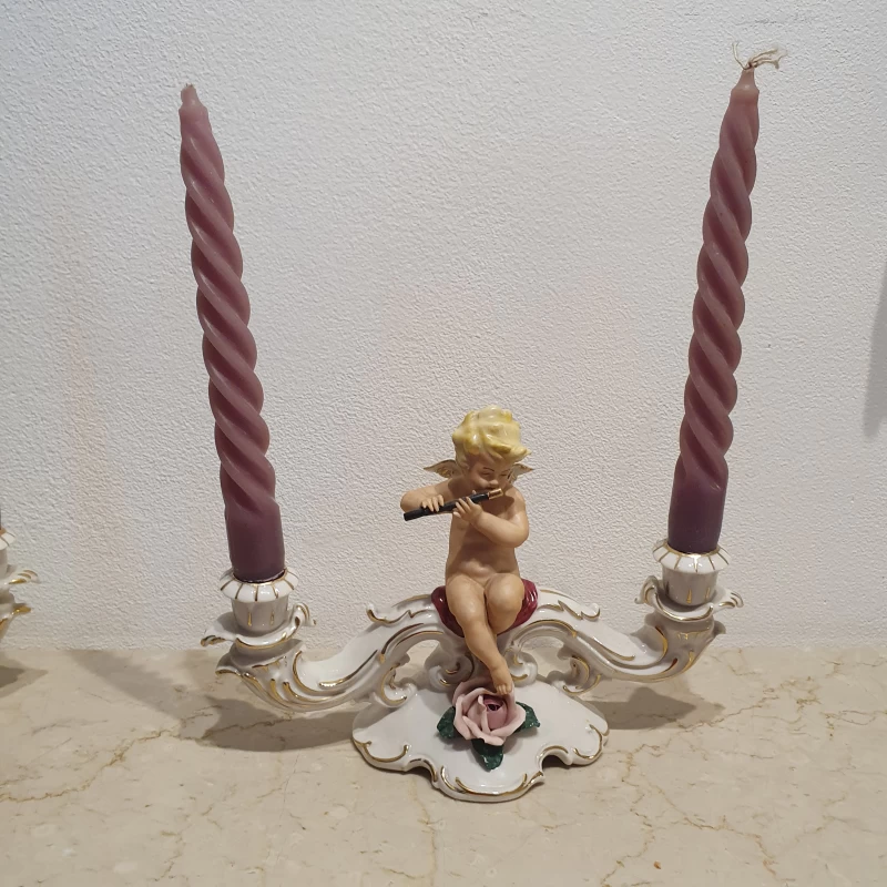 Par de Candelabros de Porcelana