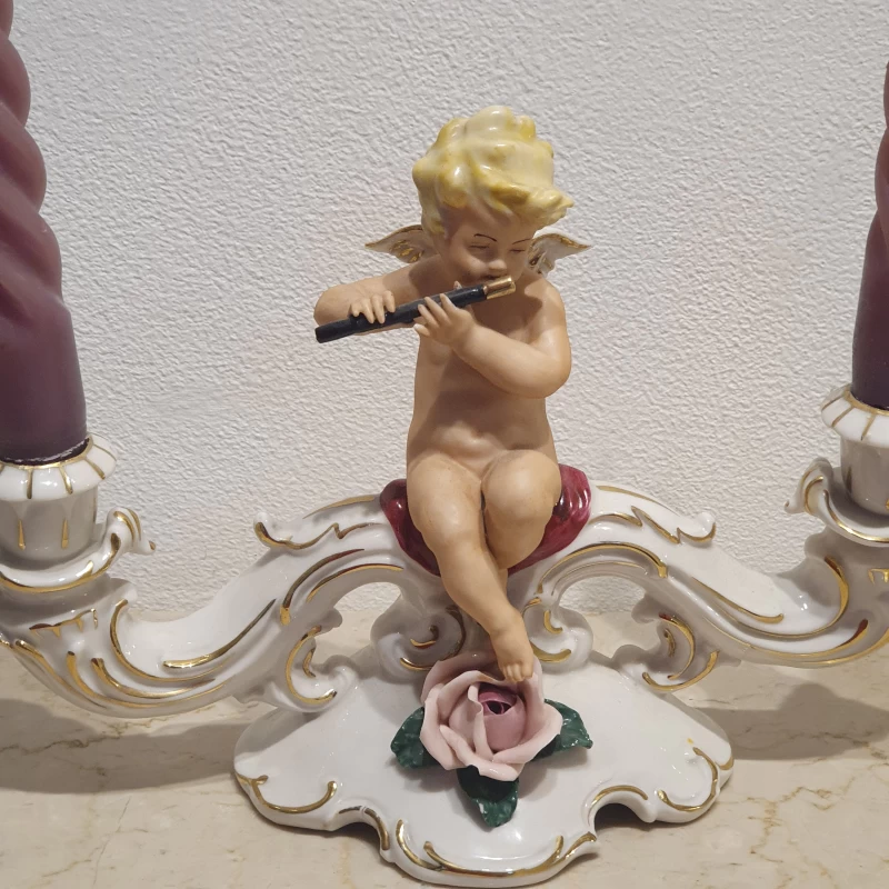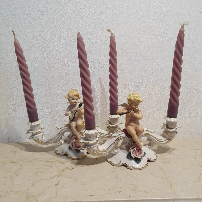 Par de Candelabros Antiguos de Porcelana - Dresden