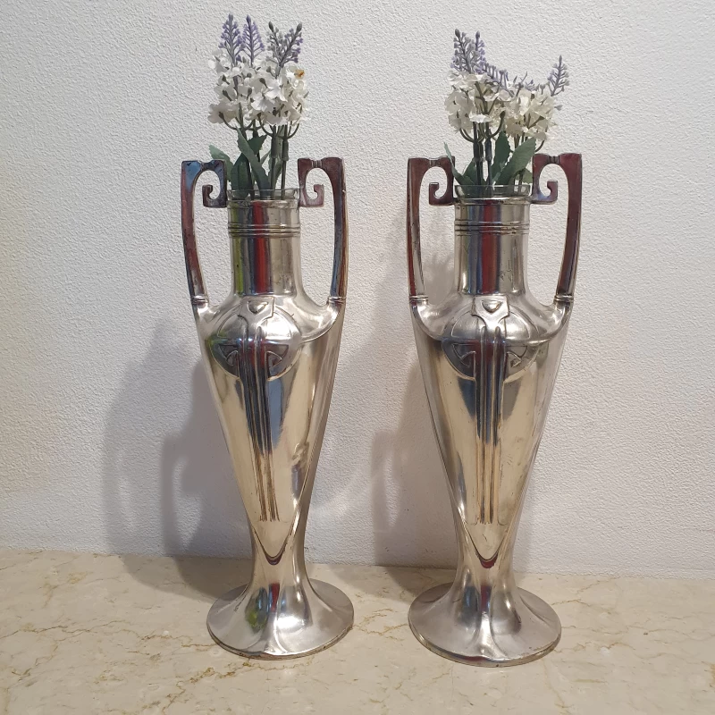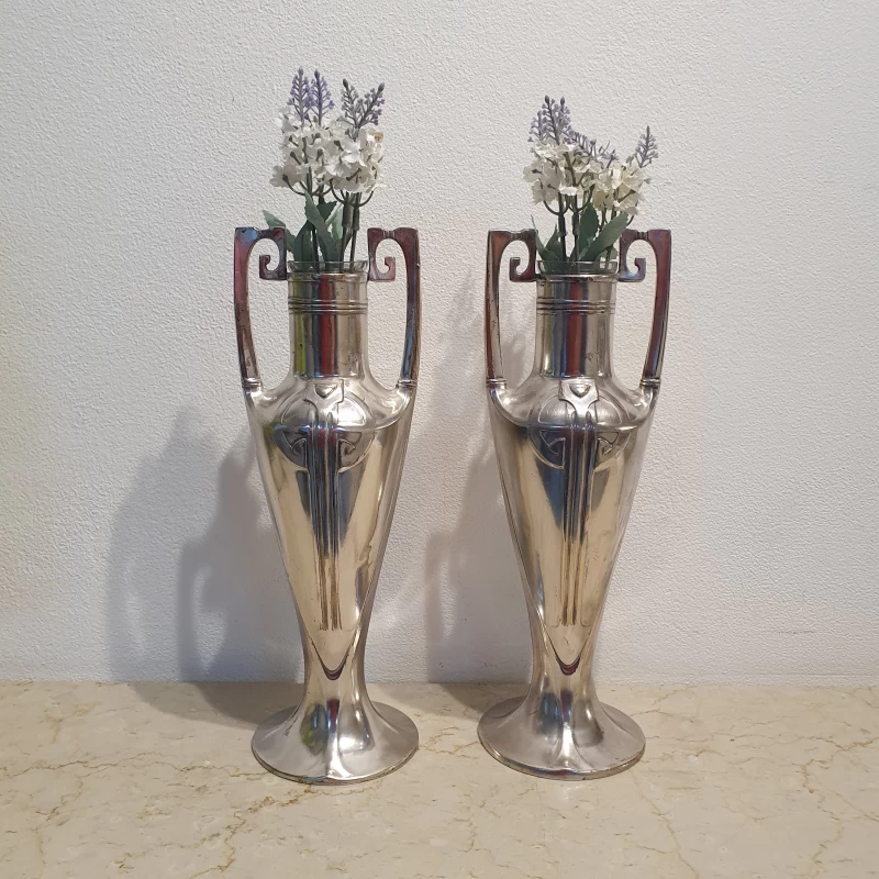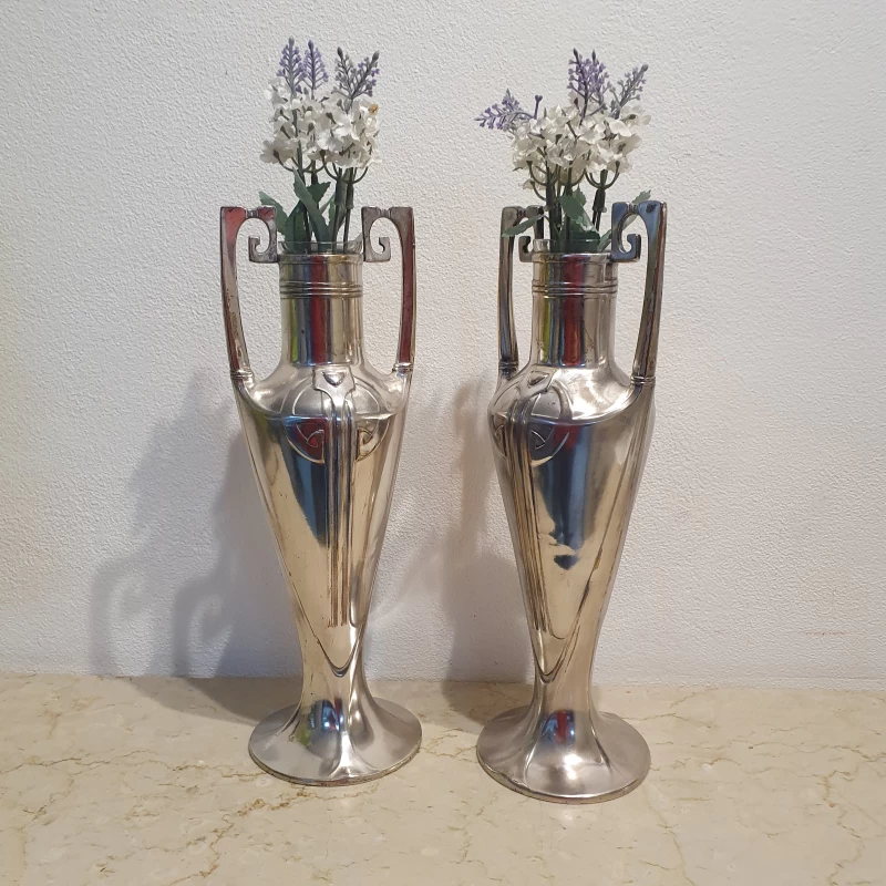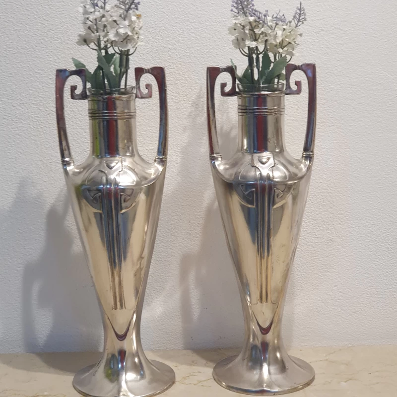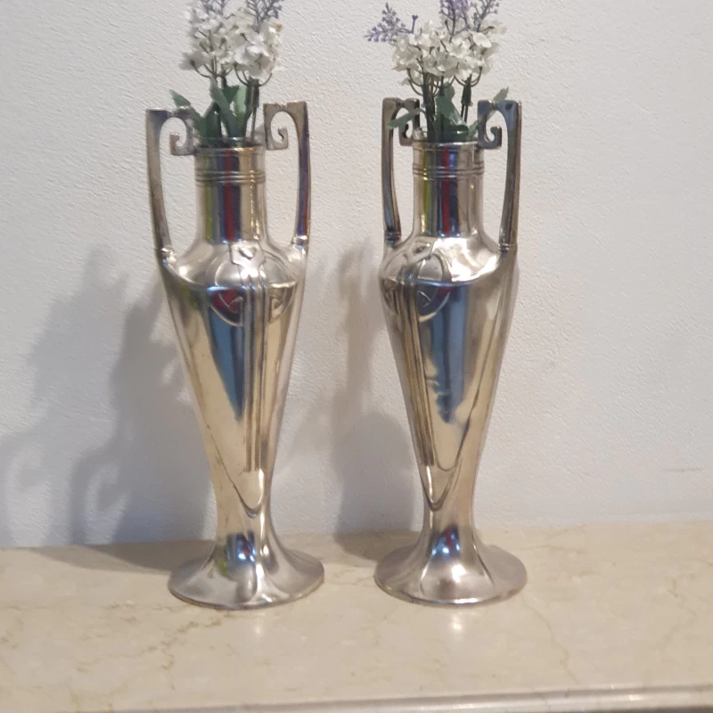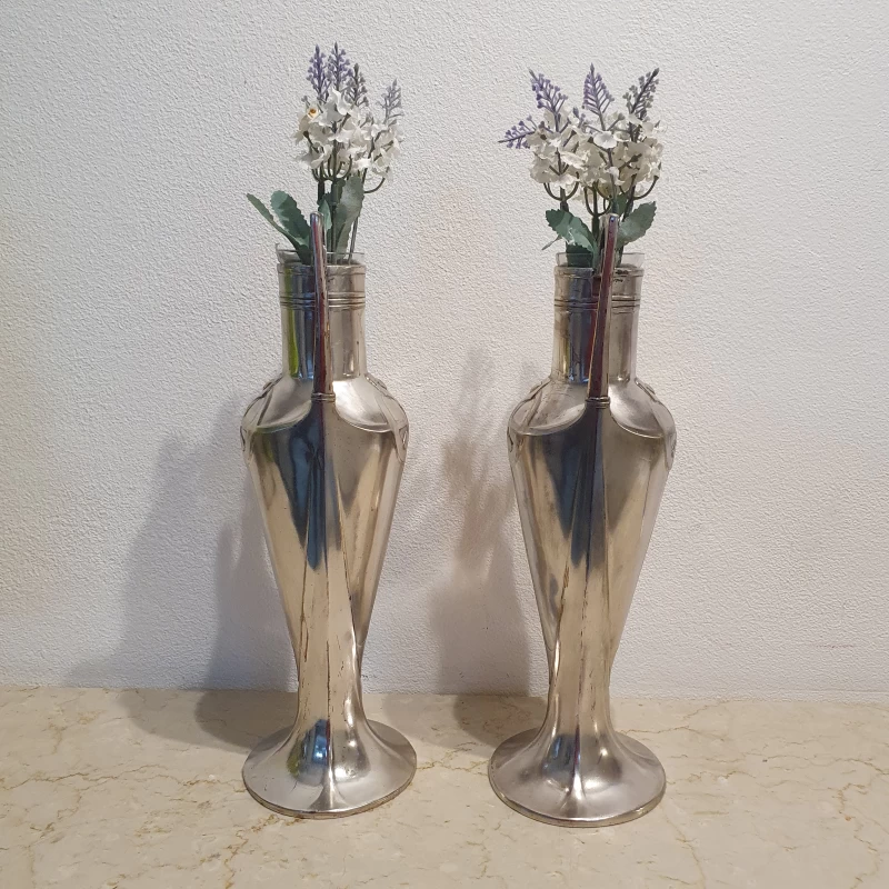 Antiguo par de violeteros en metal plateado