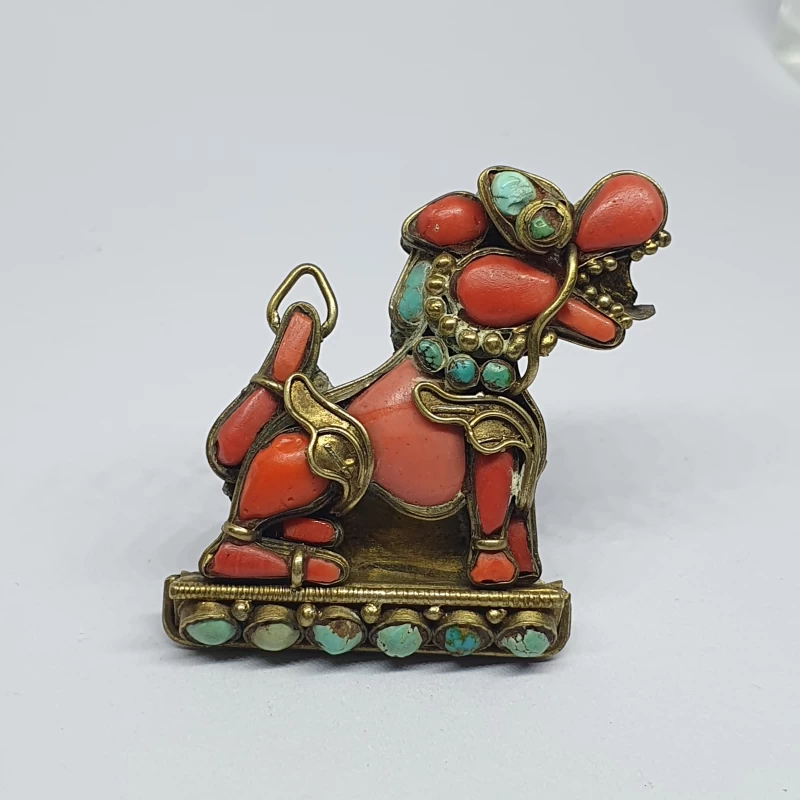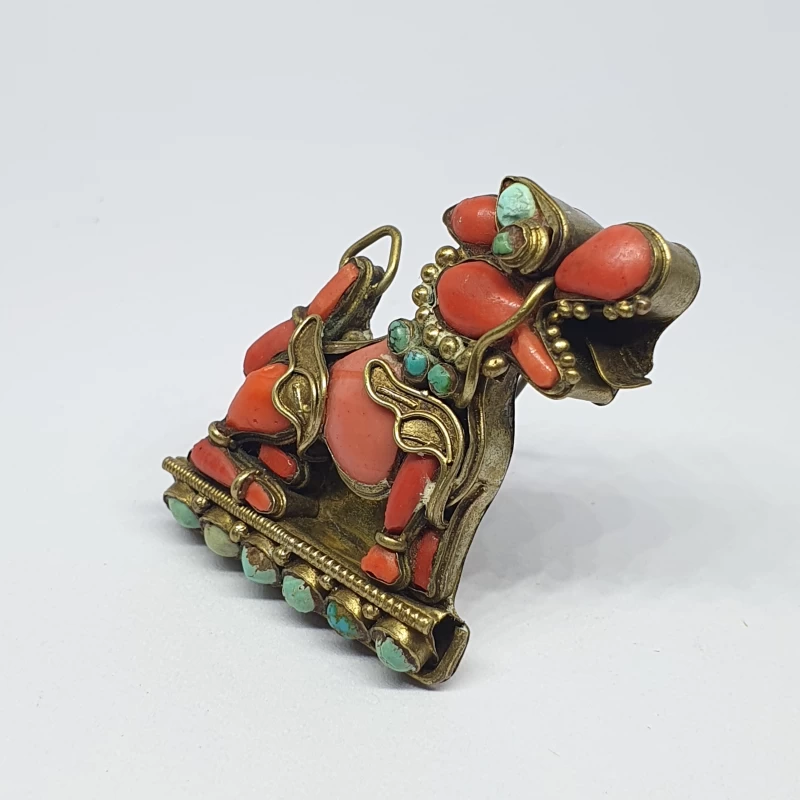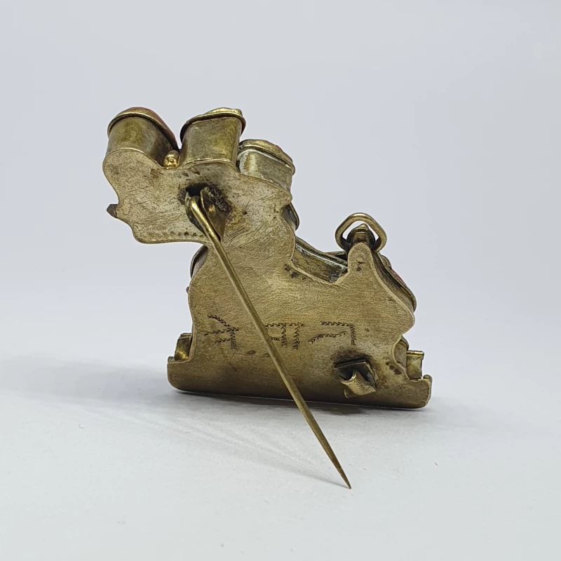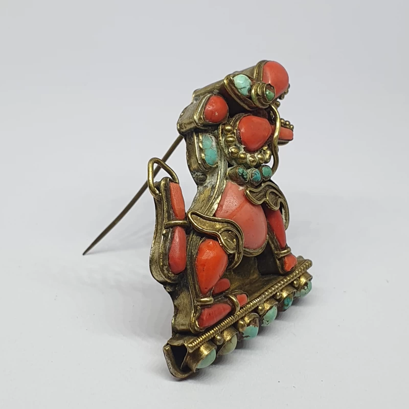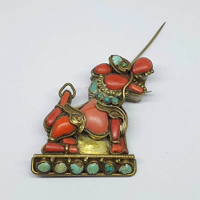 Prendedor Oriental de Bronce con Corales y Turquesas