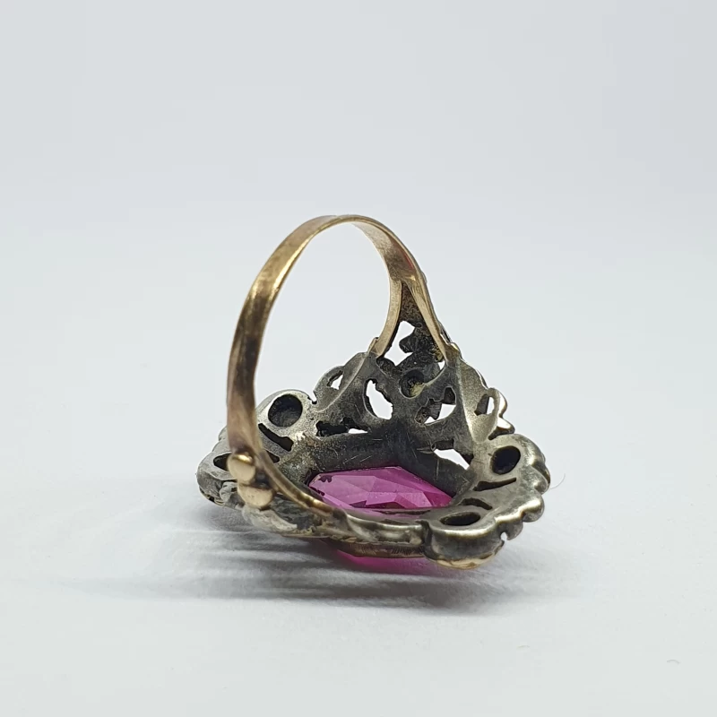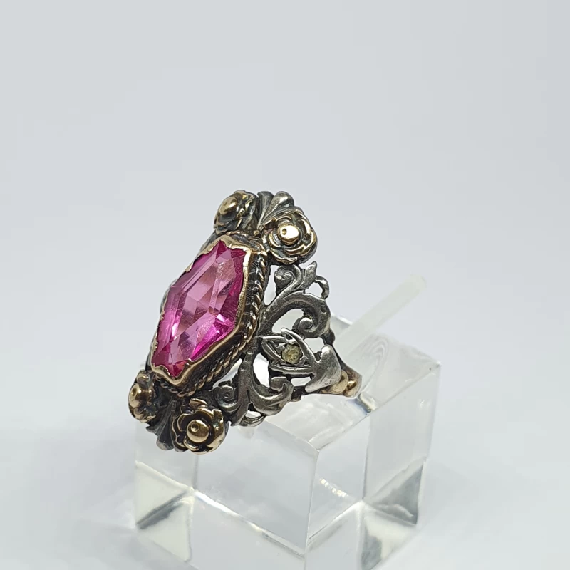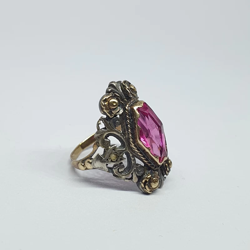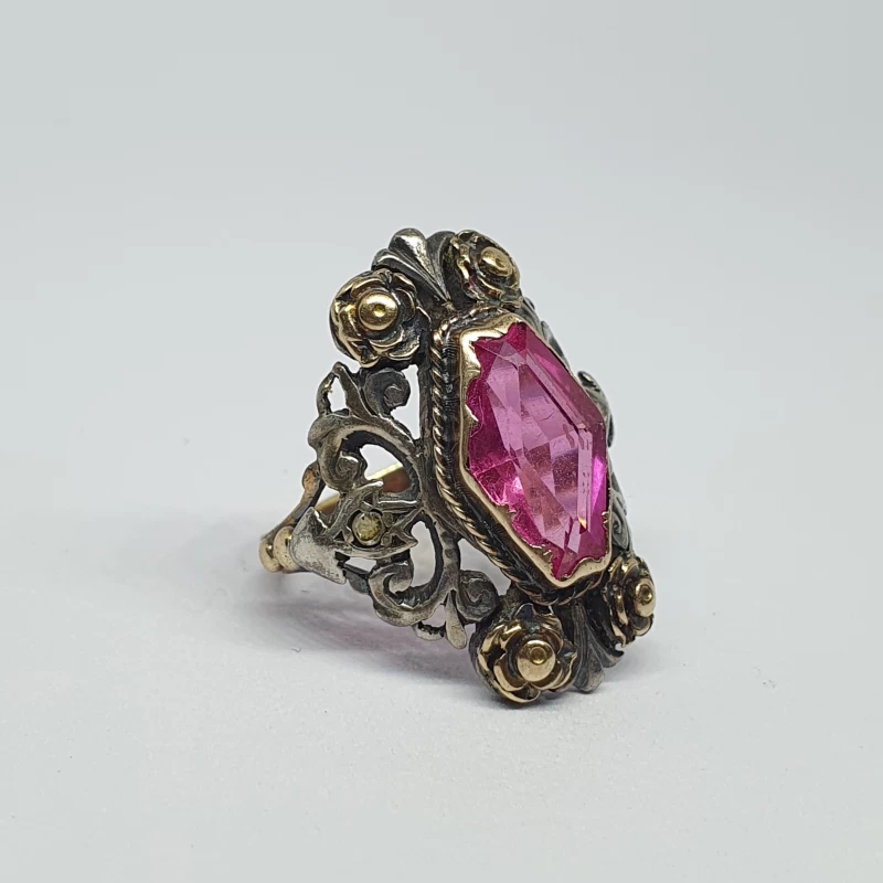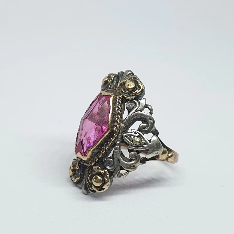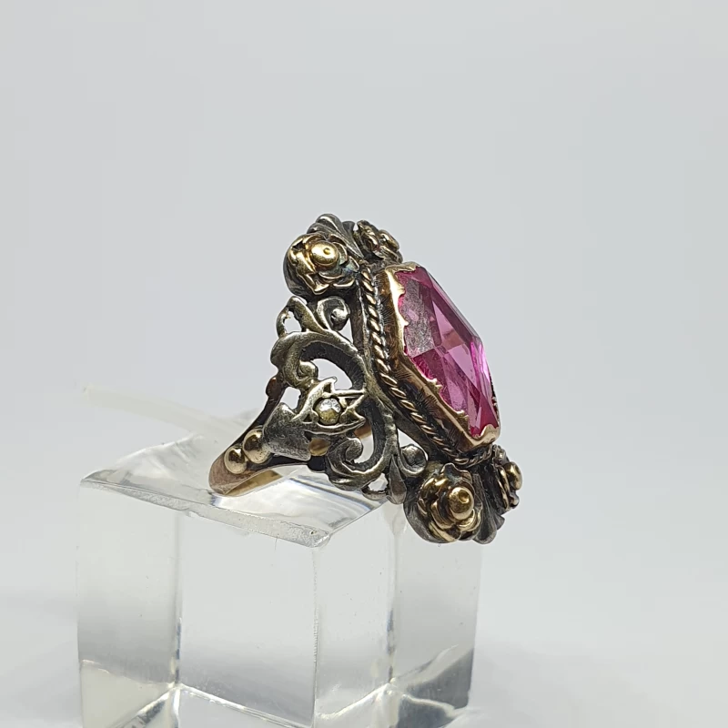 Antiguo Anillo Florentino Hecho a mano en Plata y oro