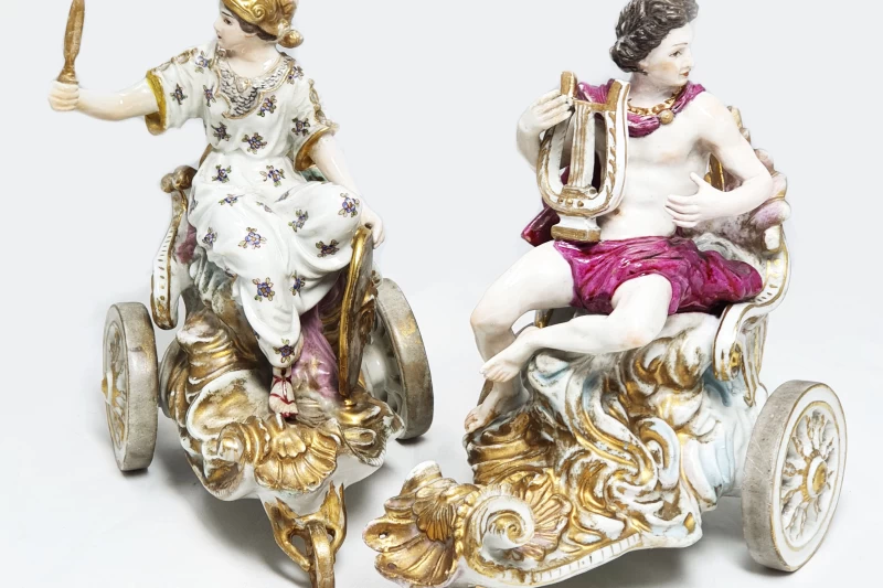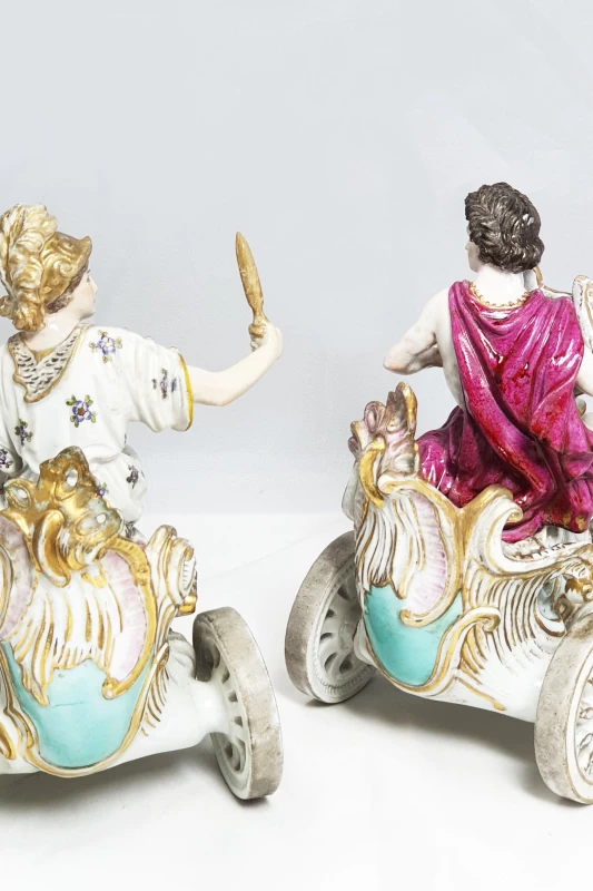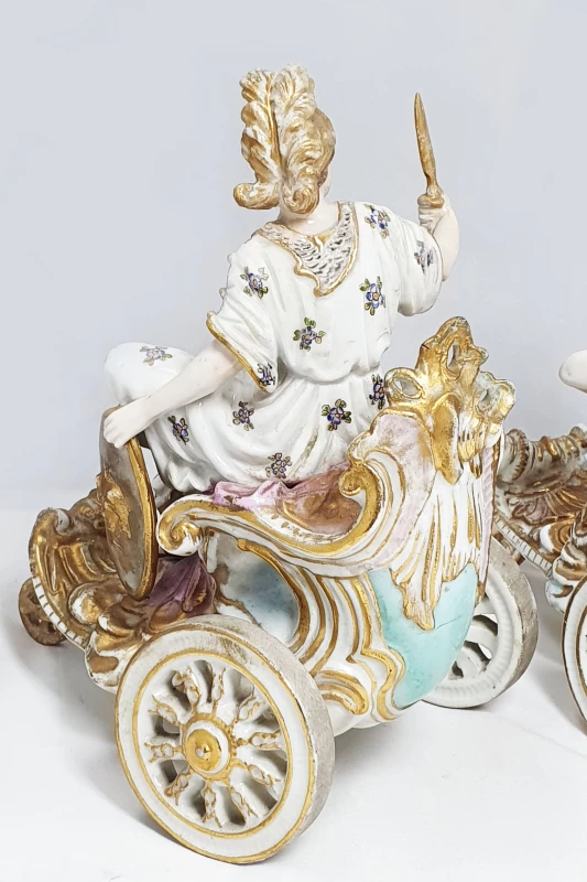 Antiguo par de carrozas de porcelana